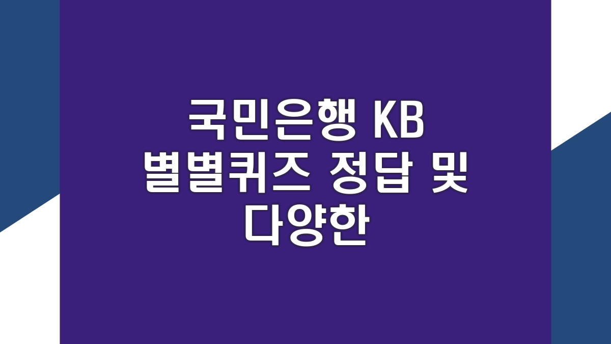 국민은행 KB 별별퀴즈는 요즘 엄청 인기 있는 이벤트야. 퀴즈를 풀고 정답을 맞추면 다양한 혜택을 받을 수 있어서 많은 사람들이 참여하고 있어. 매일 새로운 문제가 업데이트되니까 매일 확인하면서 도전하는 게 중요해. 정답을 맞추면 혜택으로 상품권이나 혜택이 주어진다고 하니까 한번 해보는 게 좋겠어. 퀴즈를 풀면서 다양한 금융 정보도 얻을 수 있어서 일석이조라는 느낌이야.