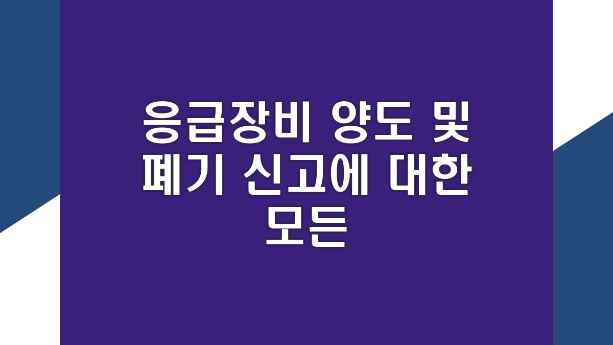 응급장비의 양도, 폐기 및 이전 신고는 각종 법적인 의무가 포함된 부분이야. 이 신고를 통해 응급장비의 안전성과 관리 상태를 유지할 수 있어야 해. 우선 사용하는 장비의 상태를 점검하고, 양도할 경우 상대방의 자격 여부도 확인해야 해. 이렇게 함으로써 불필요한 법적 문제를 피할 수 있을 거야. 신고 과정은 복잡할 수 있지만, 필요한 정보를 잘 준비하면 수월하게 진행할 수 있어. 내가 이 정보를 토대로 신고하는 방법을 자세히 안내할게.