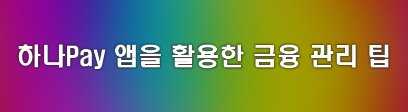 하나Pay 앱을 활용한 금융 관리 팁